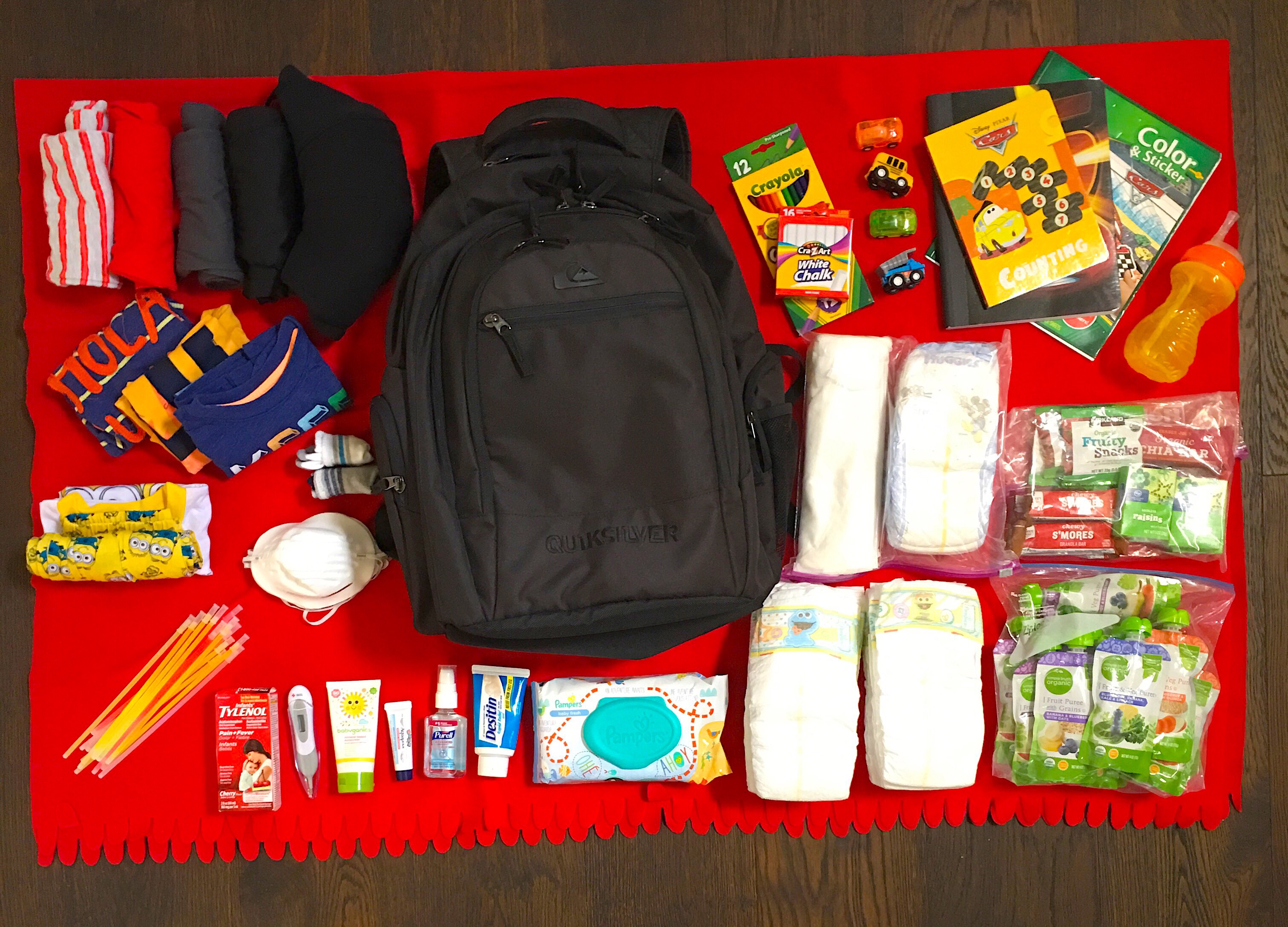 I hope this scary and tragic time serves as an opportunity for everyone to review their families emergency and evacuation plan and prepare an Emergency Grab and Go Kit. Here’s a list of what we’ve included in our kit for Ryder. This kit is meant to provide 72 hours of supplies. Please note: we keep a water filtration kit in our family emergency kit, as well as bottled water so I didn’t include any additional water in the Toddler Grab and Go kit. Assess your families needs and plan accordingly.