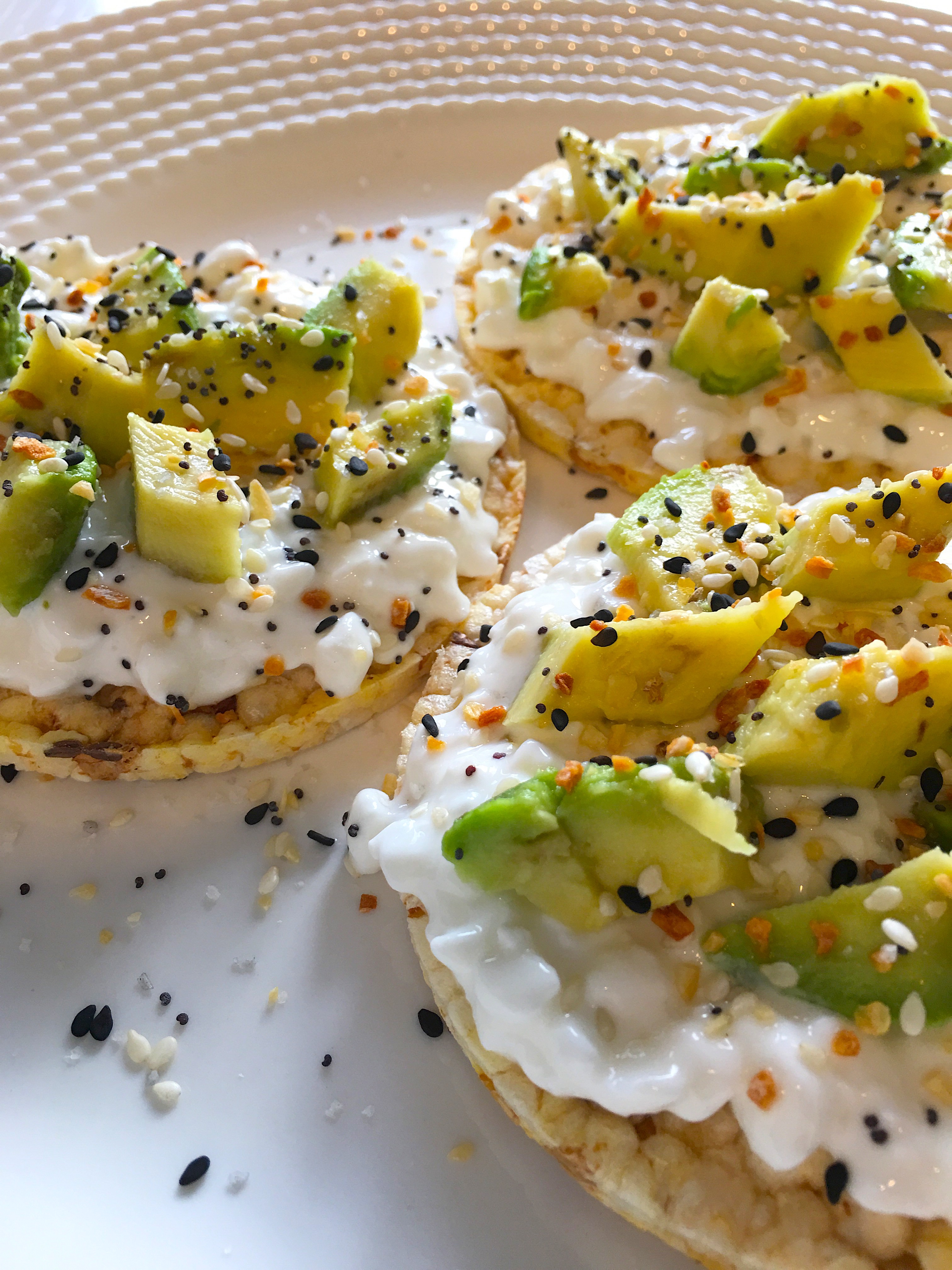 3. Top with chopped avocado and a sprinkle of bagel seasoning.